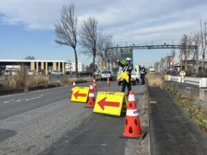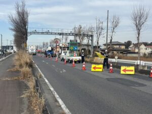 3年前に下仁田の国道254号でのトンネル工事で規制業務を開始し、毎年コツコツ実績を積み上げてきましたが、とうとう同日に5現場を請け負うこととなりました。営業努力と規制業務を行える隊員教育を行ってきた結果が、今日につながったものと思います。