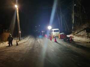 令和7年12月14日の夜から15日の朝にかけて2カ所同時に夜間規制業務を行いました。