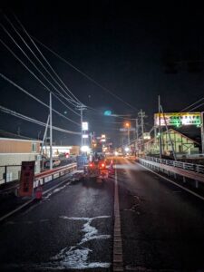 令和8年1月15日に国道50号赤堀町付近で夜間規制業務を行いました。