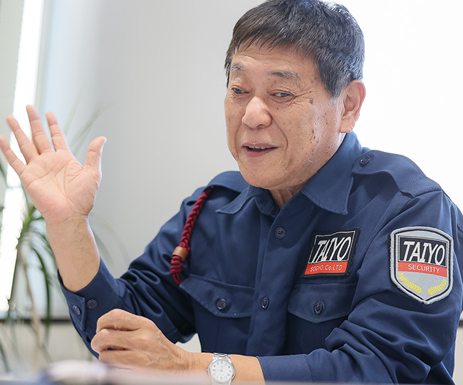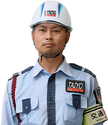 - 私の前職は、ハードウエアの設計などを行うエンジニアでした。大学を卒業後37年間、同じ仕事に従事していました。62歳で前職を辞めた後、太陽総業に入社しました。まったく異なる業界でしたが、以前にも3カ月くらい、この会社で2号警備(誘導)のアルバイトをしたことがあったので、思い切ってトライしようと思いました。経験の少なさや、体力的な心配もあり、本音を言うと当初は1年も続かないと思っていたのですが、もう5年になります(笑)。