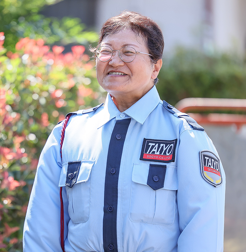 - 以前、人材派遣会社が運営する警備部門で勤務していましたが、その会社が警備部門から撤退することとなり、代わりの勤務先として紹介していただいたのが太陽総業でした。